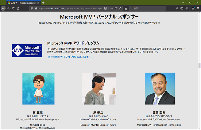 de:code 2020 MVP パーソナルスポンサー