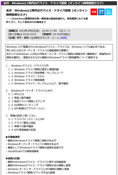インターフェース誌 Windows 11時代のデバイスドライバ開発連載開始