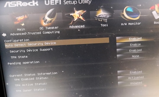 ご存知ない方のために補足すると、Windows 11やWindows 11 Insider Preview のインストール要件には実質TPM1.2(または 2.0)だけが必要である。