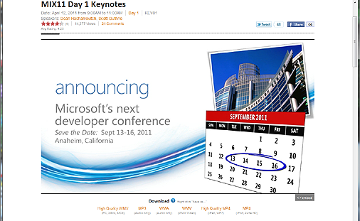 MIX11のセッションに関するコンテンツは以下から入手可能だ。