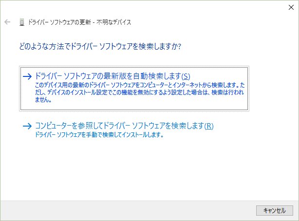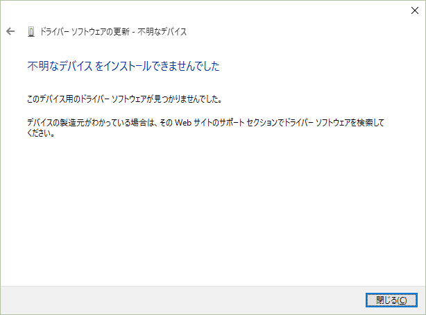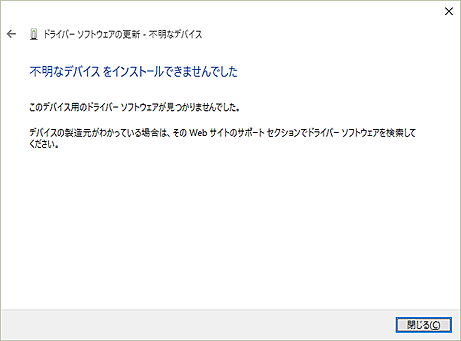 インターネットに接続されている環境でWindows 10を新規インストール、あるいはアップデートインストールしたのであれば実質的に無意味だが、ここで一応「ドライバー ソフトウエアの最新版を自動検索します」をクリックして試みる。運よくドライバーがみつかればインストールが始まるが、通常はこのように「インストールできませんでした」となる。