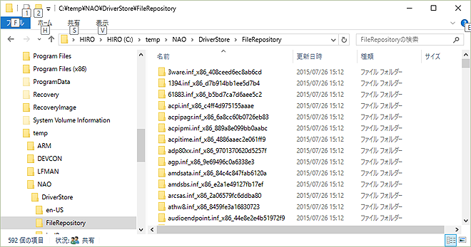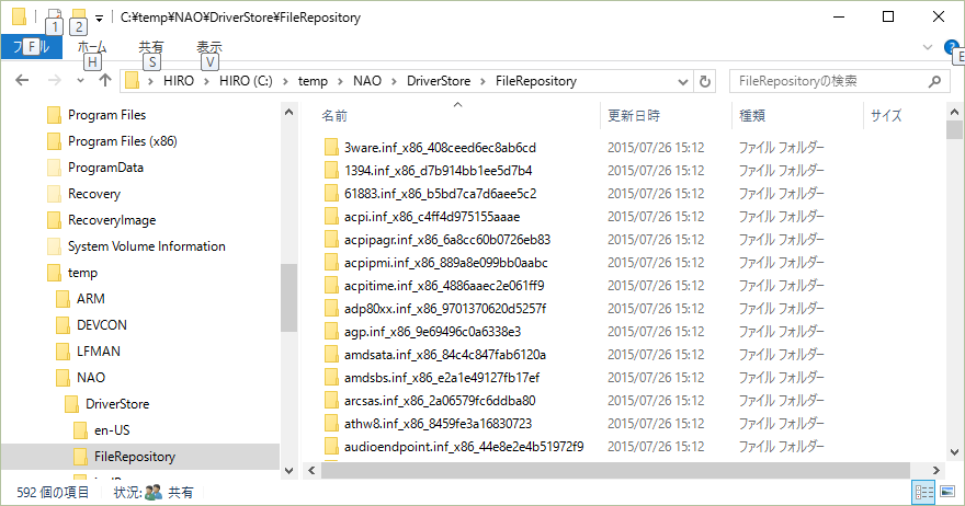 - Windows Vista以降ではインストールされているドライバーの「ドライバーパッケージ」は全て、C:\Windows\System32\DriverStore\FileRepository以下に存在する