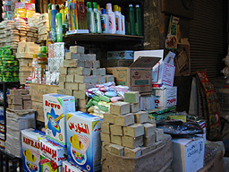 石鹸等を扱う小売店。アレッポ産石鹸の卸売り店がスークの地下にあったが、暗くて写真が良く撮れなかった。