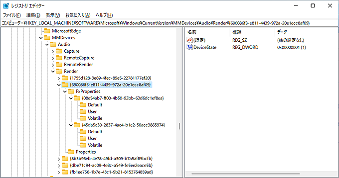 筆者はたまたま、Windows 10 用APOドライバー(下記参照)を開発していた9月頃、行き詰りの原因のレジストリが Windows 11でどうなっているかを確認した。APOドライバーが何かは別途最後に示す。