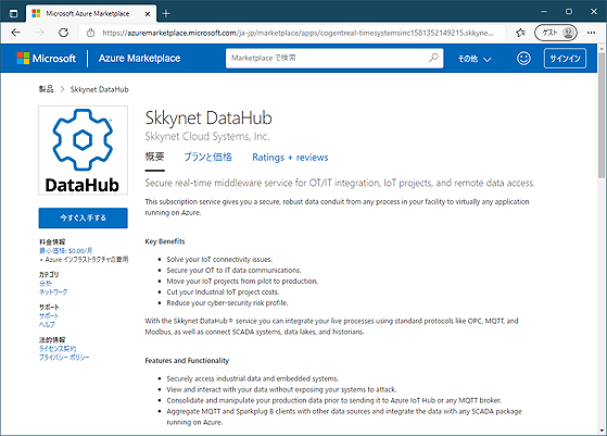 11月30日にSkkynet社から Skkynet DataHub service for Microsoft Azure がアナウンスされ、即日 Azure Marketplace で公開された。