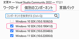 さらに個別のコンポーネントから、Windows SDK (10.0.19041.0)を設定してインストールする。