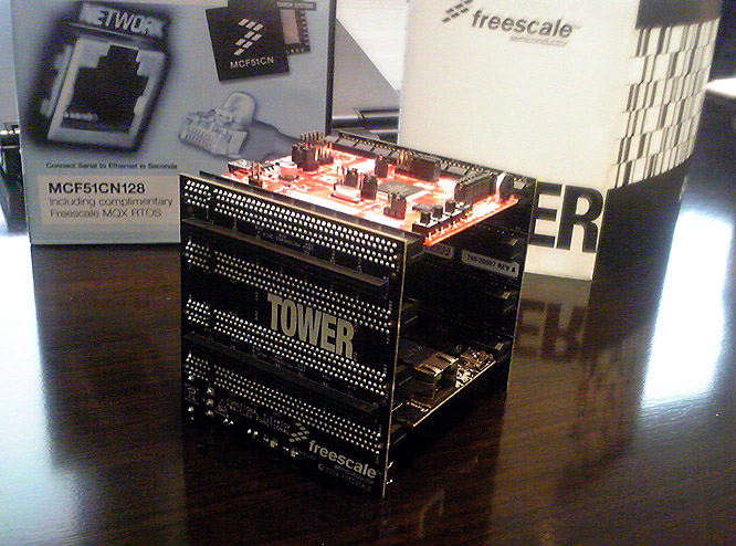 最近、仕事でFreescaleの方とご一緒する機会が多いのだが、先日面白いものを見せて頂いた。Tower Systemという組み込み評価ボード・キットである。