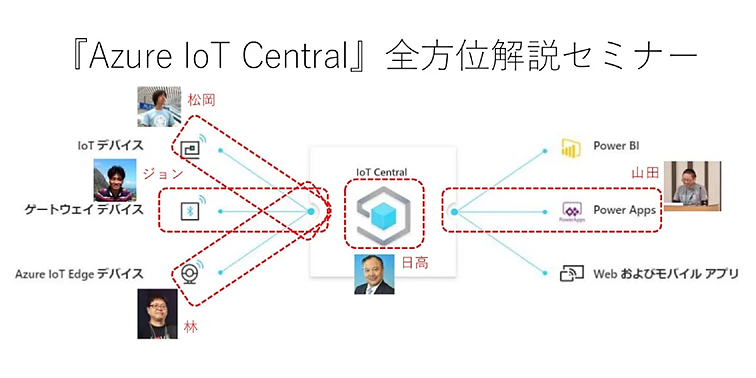 内容は最近の Azure IoT のトレンドである Azure IoT Central である。ワンストップで本格的な Azure IoT システムを容易に始めることが出来る IoT Central だが守備範囲が広くてなって来たので5人で分担、全体を5つのブロックに分けて解説した。